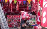 Penjual merapikan dagangannya di Kampung Bendera di Jalan Darmokali, Surabaya, Jawa Timur, Jumat (2/8/2024). Kampung Bendera merupakan salah satu lokasi penjualan bendera Merah Putih, umbul-umbul dan berbagai aksesoris lainnya di Surabaya yang bisa dibeli oleh masyarakat menjelang HUT ke-79 Kemerdekaan RI. (FOTO : ANTARA FOTO/Didik Suhartono)