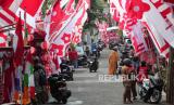 REPUBLIKA.CO.ID, SURABAYA -- Sejumlah calon pembeli mengunjungi Kampung Bendera di Jalan Darmokali, Surabaya, Jawa Timur, Jumat (2/8/2024).