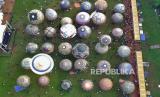 Foto udara penerbangan balon tradisional saat digelar Java Balloon Attraction 2024 di lapangan Taman Rekreasi Kalianget, Wonosobo, Jawa Tengah, Sabtu (3/8/2024). Atraksi penerbangan 72 balon tradisional berbagai motif dengan membentuk formasi Negeri di Awan, Telaga Menjer, dan Lembah Dieng digelar selama dua hari sebagai salah satu even budaya untuk meningkatkan kunjungan wisata di wilayah Wonosobo. (FOTO : ANTARA FOTO/Anis Efizudin)