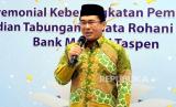 Direktur Bisnis Bank Mandiri Taspen Maswar Purnama menghadiri seremonial pemberangkatan nasabah pemenang undian tabungan wisata rohani umroh di Bandara Internasional Soekarno Hatta, Tangerang, Banten, Kamis (1/8/2024). Program umroh ini adalah bentuk apresiasi terhadap kinerja Bank Mandiri Taspen yang meningkat. Bank Mandiri Taspen membukukan laba sebesar Rp 860,14 miliar sepanjang semester I-2024 dengan pertumbuhan kredit sebesar 12,98 persen (YoY) menjadi Rp 43,59 triliun. (FOTO : Dok Republika)