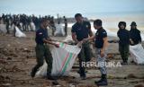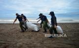 REPUBLIKA.CO.ID, PADANG PARIAMAN -- Sejumlah taruna Politeknik Kelautan Dan Perikanan (Poltek KP) Pariaman mengumpulkan sampah pesisir di Pantai Tiram Padang Pariaman, Sumatera Barat, Ahad (4/8/2024).