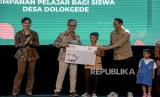 Ketua Dewan Komisioner Otoritas Jasa Keuangan (OJK) Mahendra Siregar (kedua kiri) didampingi Kepala Eksekutif Pengawas Perilaku Pelaku Usaha Jasa Keuangan, Edukasi, dan Pelindungan Konsumen OJK Friderica Widyasari Dewi (kiri) menyerahkan tabungan simpanan pelajar dan guru saat kick-off ekosistem keuangan inklusif di wilayah perdesaan Dolokgede, Bojonegoro, Jawa Timur, Sabtu (3/8/2024). Melalui program Ekosistem Keuangan Inklusif (EKI) tersebut OJK berupaya untuk meningkatkan akses keuangan masyarakat khususnya di perdesaan guna mempercepat pengembangan dan peningkatan kesejahteraan masyarakat desa. (FOTO : ANTARA FOTO/Muhammad Mada)