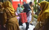 Guru membawa kotak yang berisi makanan saat ujicoba pelaksanaan program Makan Bergizi Gratis (MBG) di SDN 4 Kota Tangerang, Banten, Senin (5/8/2024). Uji coba MBG tersebut bertujuan mematangkan strategi dan mitigasi program unggulan Presiden dan Wakil Presiden Terpilih periode 2024-2029. Adapun paket menu yang disediakan hari ini adalah Nasi Putih, Fuyunghai, Capcay, Melon dan Susu. (FOTO : Republika/Prayogi)