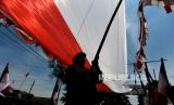 Warga Kampung Penggilingan membentangkan bendera Merah Putih sepanjang satu kilometer di kawasan permukiman guna menyemarakkan HUT ke-79 RI.