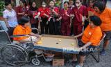 Sejumlah warga lanjut usia (lansia) bermain adu cepat memasukkan bola ke lubang saat mengikuti lomba HUT RI di Panti Werda Pengayoman, Semarang, Jawa Tengah, Rabu (7/8/2024). Kegiatan yang diikuti penghuni panti sosial jompo tersebut untuk menyambut dan memeriahkan HUT ke-79 Republik Indonesia sekaligus memberikan motivasi rasa semangat untuk hidup lebih sehat kepada para warga lansia. (FOTO : ANTARA FOTO/Makna Zaezar)