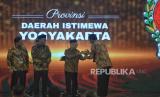 Wakil Presiden Maruf Amin menyerahkan penghargaan Universal Health Coverage (UHC) Awards 2024 didampingi Menko PMK Muhadjir Effendy dan Direktur Utama BPJS Kesehatan Ghufron Mukti dalam acara penyerahan UHC Awards 2024 di Jakarta, Kamis (8/8/2024). Penghargaan ini menandai pencapaian Indonesia dalam menyediakan jaminan kesehatan yang menyeluruh bagi warganya melalui Program JKN, yang telah berlangsung selama satu dekade. Di samping itu, Indonesia telah mencapai UHC lebih dari 98 persen, melampaui target yang tertuang dalam Peraturan Presiden Nomor 36 Tahun 2023 tentang Peta Jalan Jaminan Sosial 2023-2024, di mana target kepesertaan JKN pada tahun 2024 sebanyak 98 persen. Penghargaan ini diserahkan kepada pemimpin daerah di 33 provinsi, serta 460 kabupaten/kota. (FOTO : Republika/Prayogi)