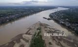 Sungai terpanjang di Sumatera itu menyusut sejak dua bulan terakhir dan mengakibatkan sejumlah titik tepian di beberapa daerah mengering hingga setara luas 30 lapangan sepak bola.