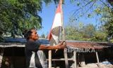 REPUBLIKA.CO.ID, KUPANG -- Warga eks Timor Timur memasang bendera Merah Putih di depan rumahnya di Naibonat, Kabupaten Kupang, Nusa Tenggara Timur, Sabtu (10/08/2024).
