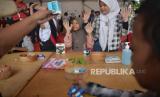 Anak-anak bermain sekaligus mendapatkan edukasi mengenai dampak krisis iklim dalam acara bertajuk Satu Hari Bermain Bersama Anak di Kantor Kemenko PMK, Jakarta, Sabtu (10/8/2024). Kementerian Koordinator Bidang Pembangunan Manusia dan Kebudayaan mencanangkan rangkaian kampanye nasional Aksi Generasi Iklim di delapan Provinsi. Acara ini disi beragam informasi, edukasi mengenai dampak krisis iklim pada anak dan aksi adaptasi iklim ditampilkan dengan cara yang mendidik dan menyenangkan (edutainment) dan mudah dipahami melalui seni budaya, permainan dan pertunjukan yang bertema resiliensi terhadap krisis iklim. (FOTO : Republika/Prayogi)