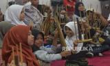 Anak-anak bermain angklung dalam acara bertajuk Satu Hari Bermain Bersama Anak di Kantor Kemenko PMK, Jakarta, Sabtu (10/8/2024). Kementerian Koordinator Bidang Pembangunan Manusia dan Kebudayaan mencanangkan rangkaian kampanye nasional Aksi Generasi Iklim di delapan Provinsi. Acara ini disi beragam informasi, edukasi mengenai dampak krisis iklim pada anak dan aksi adaptasi iklim ditampilkan dengan cara yang mendidik dan menyenangkan (edutainment) dan mudah dipahami melalui seni budaya, permainan dan pertunjukan yang bertema resiliensi terhadap krisis iklim. (FOTO : Republika/Prayogi)