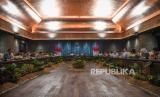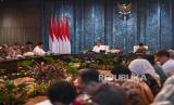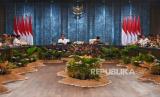 REPUBLIKA.CO.ID, KALTIM -- Presiden Joko Widodo didampingi Wakil Presiden Maruf Amin memimpin sidang kabinet paripurna di Istana Garuda, Ibu Kota Nusantara (IKN), Penajam Paser Utara, Kalimantan Timur, Senin (12/8/2024).