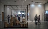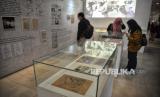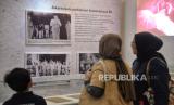 Pengunjung melihat Pameran Bersama Arsip Kepresidenan di Taman Ismail Marzuki, Jakarta, Selasa (13/8/2024). Pameran arsip bertajuk Mari Kemari ke Nusantara tersebut menampilkan koleksi arsip, dokumen, foto, dan memorabilia panjang mengenai perpindahan Ibu Kota Negara Indonesia. (FOTO : Republika/Prayogi)
