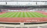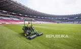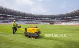 REPUBLIKA.CO.ID, JAKARTA -- Pekerja melakukan perawatan rumput Stadion GBK di Jakarta, Selasa (13/8/2024).
