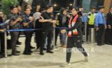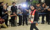 Atlet panjat tebing Indonssia Desak Made Rita tiba di Bandara Soekarno Hatta, Tangerang, Banten, Selasa (13/8/2024). Rombongan atlet Indonesia bersama peraih medali emas Veddriq Leonardo dan Rizki Juniansyah tiba di bandara sekitar pukul 22.43 WIB disambut tepuk tangan dari keluarga dan kerabat. (FOTO : Republika/Thoudy Badai)