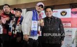 Atlet angkat besi Indonesia Rizki Juniansyah (kedua kanan) bersama Anggota International Olympic Committee (IOC) Erick Thohir (kanan) dan atlet panjat tebing Veddriq Leonardo berbincang saat tiba di Bandara Soekarno Hatta, Tangerang, Banten, Selasa (13/8/2024). Rombongan atlet Indonesia yang berlaga pada gelaran Olimpiade Paris 2024 bersama peraih medali emas Veddriq Leonardo dan Rizki Juniansyah tiba di bandara sekitar pukul 22.43 WIB disambut tepuk tangan dari keluarga dan kerabat. (FOTO : Republika/Thoudy Badai)