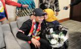Atlet panjat tebing Veddriq Leonardo disambut ibunya saat tiba di Bandara Soekarno Hatta, Tangerang, Banten, Selasa (13/8/2024). Rombongan atlet Indonesia bersama peraih medali emas Veddriq Leonardo dan Rizki Juniansyah tiba di bandara sekitar pukul 22.43 WIB disambut tepuk tangan dari keluarga dan kerabat. (FOTO : Republika/Thoudy Badai)
