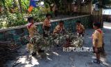 REPUBLIKA.CO.ID, SOLO -- Siswa membersihkan sampah di halaman sekolah saat peringatan Hari Pramuka di SD Negeri Ngemplak Solo, Jawa Tengah, Rabu (14/8/2024).
