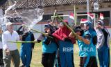 REPUBLIKA.CO.ID, TEMANGGUNG -- Sejumlah penyandang disabilitas intelektual mengikuti lomba memecahkan air saat memeriahkan HUT ke-79 Kemerdekaan RI di kompleks Sentra Terpadu Kartini Temanggung, Jawa Tengah, Rabu (14/8/2024).