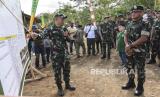 Pangkostrad Letjen TNI Muhammad Saleh Mustafa (kanan) mendengarkan pemaparan prajurit TNI AD saat gerakan nasional ketahanan pangan, penanaman perdana kakao dan jagung di Desa Gedebong, Tasikmalaya, Jawa Barat, Rabu (14/8/2024). TNI AD berkerjasama dengan PT Internasional Mina Agro dan Gabungan Kelompok Tani (Gapoktan) menanam kakao dan jagung di lahan seluas 610 hektare milik PT PN VIII untuk mendukung ketahanan pangan nasional. (FOTO : ANTARA FOTO/Adeng Bustomi)