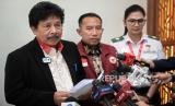 Kepala Badan Pembinaan Ideologi Pancasila (BPIP) Yudian Wahyudi (kiri) menyampaikan keterangan saat konferensi pers terkait jilbab Paskibraka di kawasan Ibu Kota Nusantara (IKN), Penajam Paser Utara, Kalimantan Timur, Rabu (14/8/2024). BPIP menegaskan tidak memaksa Pasukan Pengibar Bendera Pusaka (Paskibraka) putri untuk melepas jilbab saat bertugas sebagai Paskibraka dalam acara pengukuhan dan pengibaran bendera 17 Agustus 2024. (FOTO : ANTARA FOTO/Fauzan)