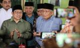 REPUBLIKA.CO.ID, JAKARTA -- Ketua Umum PKB Muhaimin Iskandar bersama pengasuh Ponpes Daarul Rahman KH Syukron Makmun usai pertemuan di Ponpes Daarul Rahman, Jagakarsa, Jakarta, Kamis (15/8/2024).