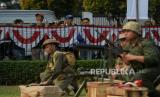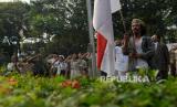 Seniman dari komunitas Reenactor Bangor Indonesia menampilkan teatrikal sosiodrama di halaman Museum Perumusan Naskah Proklamasi, Menteng, Jakarta Pusat, Jumat (16/8/2024). Disutradarai Sufiyanto Adisoerjo, sosiodrama berjudul Pusaka Indonesia digelar dengan tujuan mengedukasi penonton tentang sejarah kemerdekaan Indonesia. Acara tersebut sebagai rangkaian acara Napak Tilas Proklamasi serta menyambut perayaan Hari Ulang Tahun (HUT) ke -79 Republik Indonesia. (FOTO : Republika/Thoudy Badai)