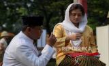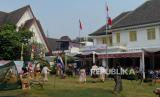 Warga melihat pementasan teatrikal sosiodrama di halaman Museum Perumusan Naskah Proklamasi, Menteng, Jakarta Pusat, Jumat (16/8/2024). Sosiodrama berjudul Pusaka Indonesia tersebut menceritakan fragmen perjalanan Kemerdekaan Indonesia dari zaman kolonial Belanda, pendudukan Jepang, masuknya sekutu, perumusan naskah proklamasi, hingga konflik dengan sekutu pasca proklamasi kemerdekaan Indonesia. (FOTO : Republika/Thoudy Badai)