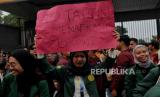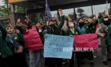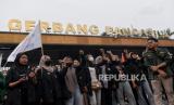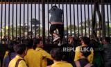 Massa aksi dari aliansi Bada Eksekutif Mahasiswa Seluruh Indonesia (BEM SI) melakukan unjuk rasa di belakang Gedung DPR/MPR RI, Jakarta, Jumat (16/8/2024). Dalam aksinya, mereka menyampaikan aspirasinya terkait ketidakpuasan terhadap 10 tahun pemerintahan Presiden Joko Widodo. Aksi tersebut berlangsung hingga sore hari, sejumlah massa sempat saling dorong dengan aparat kepolisian saat massa aksi berusaha merangsek ke depan pintu gerbang DPR/MPR. Massa membubarkan diri setelah mendapatkan peringatan dari petugas kepolisian sekitar pukul 18.25 WIB. (FOTO : Republika/Thoudy Badai)