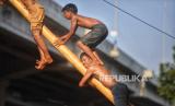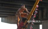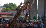 REPUBLIKA.CO.ID, JAKARTA -- Sejumlah warga mengikuti lomba panjat pinang di Kawasan Kalimalang, Jakarta, Ahad (18/8/2024).