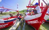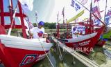 Nelayan melakukan pengecatan kapal miliknya di di Desa Mundupesisir, Kabupaten Cirebon, Jawa Barat. Nippon Paint Indonesia menerima penghargaan dari MURI dalam kategori Pengecatan Kapal Nelayan Merah Putih Terbanyak. Nippon Paint berkomitmen mendukung nelayan dan masyarakat pesisir melalui CSR Kapal Nelayan Merah Putih sebagai aksi nyata program Warnai Kehidupan #ColouringLives. (FOTO : Dok Republika)