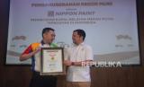 Direktur MURI Osmar Semesta Susilo menyerahkan penghargaan rekor MURI kepada General Manager–TU Division Nippon Paint Indonesia Mark Liew. Nippon Paint Indonesia menerima penghargaan dari MURI dalam kategori Pengecatan Kapal Nelayan Merah Putih Terbanyak. Nippon Paint berkomitmen mendukung nelayan dan masyarakat pesisir melalui CSR Kapal Nelayan Merah Putih sebagai aksi nyata program Warnai Kehidupan #ColouringLives. (FOTO : Dok Republika)