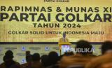 Plt Ketua Umum Partai Golkar Agus Gumiwang Kartasasmita memberikan sambutan saat pembukaan munas XI Partai Golkar di Jakarta Convention Center, Jakarta, Selasa (20/8/2024). Partai Golkar menggelar Munas XI dengan agenda salah satunya yaitu pemilihan Ketua Umum DPP Partai Golkar Periode 2024-2029. (FOTO : Republika/Prayogi)