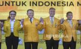 Ketua Organizing Committee (OC) Rapimnas dan Munas XI Partai Golkar Sari Yuliati, Ketua Pelaksana Rapimnas dan Munas XI Partai Golkar Bambang Soesatyo, Plt Ketua Umum Partai Golkar Agus Gumiwang Kartasasmita dan Ketua Steering committee (SC) rapimnas dan Munas XI Partai Golkar Adies Kadir (dari kiri) berfoto usai membuka Munas Partai Golkar di Jakarta Convention Center, Jakarta, Selasa (20/8/2024). Partai Golkar menggelar Munas XI dengan agenda salah satunya yaitu pemilihan Ketua Umum DPP Partai Golkar Periode 2024-2029. (FOTO : Republika/Prayogi)