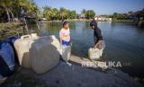 REPUBLIKA.CO.ID, INDRAMAYU -- Warga mengambil air menggunakan jeriken di kolam Desa Tamansari, Indramayu, Jawa barat, Selasa (20/8/2024).