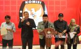REPUBLIKA.CO.ID, JAKARTA -- Ketua KPU Mochammad Afifuddin didampingi Komisioner KPU Betty Epsilon, Idham Holik, dan Yulianto Sudrajat menyampaikan tanggapan terkait putusan MK di Jakarta, Selasa (20/8/2024).