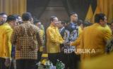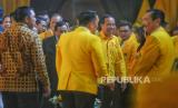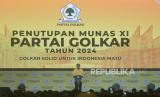 Sejumlah kader partai Golkar menghadiri penutupan Musyawarah Nasional (Munas) XI Partai Golkar di Jakarta Convention Center (JCC), Senayan, Jakarta, Rabu (21/8/2024). Munas XI partai Golkar tersebut menyetujui dan menetapkan Bahlil Lahadalia sebagai Ketua Umum DPP Partai Golkar periode 2024-2029. (FOTO : Republika/Prayogi)