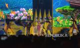 Tari-tarian mengisi acara penutupan Musyawarah Nasional (Munas) XI Partai Golkar di Jakarta Convention Center (JCC), Senayan, Jakarta, Rabu (21/8/2024). Munas XI partai Golkar tersebut menyetujui dan menetapkan Bahlil Lahadalia sebagai Ketua Umum DPP Partai Golkar periode 2024-2029. (FOTO : Republika/Prayogi)