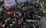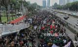 REPUBLIKA.CO.ID, JAKARTA -- Sejumlah pengunjuk rasa dari berbagai elemen masyarakat menggelar aksi unjuk rasa di depan kompleks Parlemen Senayan, Jakarta, Kamis (22/8/2024).