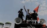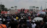 Politisi Tom Lembong menyampaikan orasi saat mengikuti aksi di depan kompleks Parlemen Senayan, Jakarta, Kamis (22/8/2024). Aksi tersebut sebagai bentuk penolakan terhadap revisi Undang-Undang Pemilihan Kepala Daerah (UU Pilkada) yang dianggap sebagai ancaman terhadap demokrasi. (FOTO : Republika/Thoudy Badai)