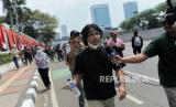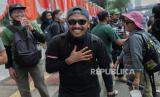 Komika Bintang Emon mengikuti unjuk rasa bersama berbagai elemen masyarakat di depan kompleks Parlemen Senayan, Jakarta, Kamis (22/8/2024). Aksi tersebut sebagai bentuk penolakan terhadap revisi Undang-Undang Pemilihan Kepala Daerah (UU Pilkada) yang dianggap sebagai ancaman terhadap demokrasi. (FOTO : Republika/Thoudy Badai)