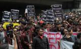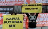 Massa aksi di depan gedung DPR suarakan penolakan terhadap revisi UU Pilkada.