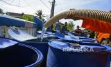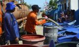 REPUBLIKA.CO.ID, MAROS -- Petugas mengisi air ke dalam wadah saat penyaluran bantuan air bersih di Desa Pajukukang, Kecamatan Bontoa, Kabupaten Maros, Sulawesi Selatan, Jumat (23/8/2024).