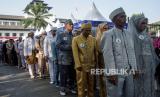 REPUBLIKA.CO.ID, BANDUNG -- Sejumlah pasangan berbaris untuk melaksanakan akad saat acara nikah massal di depan Gedung Sate, Bandung, Jawa Barat, Sabtu (24/8/2024).