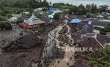 Foto udara sejumlah rumah warga yang rusak akibat banjir bandang di Kelurahan Rua, Kota Ternate, Maluku Utara, Ahad (25/8/2024). Banjir bandang yang membawa material tanah, pasir, dan batu dari gunung tersebut menerjang Kelurahan Rua pada Ahad (25/8) pukul 04.00 WIT dan mengakibatkan tiga orang meninggal dunia, sementara tim gabungan terus melakukan upaya pencarian korban lainnya yang diperkirakan masih tertimbun lumpur. (FOTO : ANTARA FOTO/Andri Saputra)