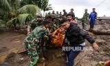 Sejumlah petugas SAR gabungan melakukan evakuasi jenazah korban banjir bandang di Kelurahan Rua, Kota Ternate, Maluku Utara, Ahad (25/8/2024). Banjir bandang yang membawa material tanah, pasir, dan batu dari gunung tersebut menerjang Kelurahan Rua pada Ahad (25/8) pukul 04.00 WIT dan mengakibatkan tiga orang meninggal dunia, sementara tim gabungan terus melakukan upaya pencarian korban lainnya yang diperkirakan masih tertimbun lumpur. (FOTO : ANTARA FOTO/Andri Saputra)
