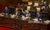 REPUBLIKA.CO.ID, JAKARTA -- Ketua DPR Puan Maharani didampingi Wakil Ketua DPR Rachmat Gobel, Lodewijk Freidrich Paulus dan Sufmi Dasco Ahmad saat memimpin Rapat Paripurna Khusus HUT DPR ke-79 di Kompleks Parlemen, Senayan, Jakarta, Kamis (29/8/2024). Dalam paripurna tersebut disampaikan juga laporan kinerja DPR tahun 2023-2024.