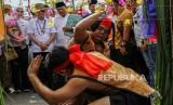 Sejumlah simpatisan pasangan bakal calon Gubernur Kalimantan Tengah Agustiar Sabran dan bakal calon Wakil Gubernur Kalimantan Tengah Edy Pratowo memperagakan tradisi Lawang Sekepeng di depan Kantor KPU Kalimantan Tengah, Palangka Raya, Kamis (29/8/2024). Pasangan Agustiar Sabran-Edy Pratowo resmi mendaftarkan diri sebagai peserta Pilgub Kalteng 2024 dengan diusung Partai Gerindra, PAN, PKS, PKN, dan PSI. (FOTO : ANTARA FOTO/Auliya Rahman)