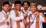 REPUBLIKA.CO.ID, PALANGKA RAYA -- Pasangan bakal calon Gubernur Kalimantan Tengah Agustiar Sabran dan bakal calon Wakil Gubernur Kalimantan Tengah Edy Pratowo berjabat tangan didampingi ketua DPD Partai Gerindra Kalteng Iwan Kurniawan usai konferensi pers di Kantor KPU Kalimantan Tengah, Palangka Raya, Kamis (29/8/2024).
