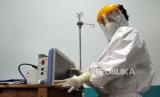 Seorang perawat mengoperasikan peralatan medis diruangan isolasi khusus pasien positif terjangkit cacar monyet atau mongkeypox (Mpox) di Rumah Sakit Umum Daerah (RSUD) Dumai, Riau, Sabtu (31/8/2024). Pihak RSUD Dumai menyediakan empat ruangan isolasi khusus penyakit cacar monyet (Mpox), mempersiapkan peralatan medis dan obat-obatan serta tenaga kesehatan untuk merawat pasien yang terjangkit penyakit itu. (FOTO : ANTARA FOTO/Aswaddy Hamid )
