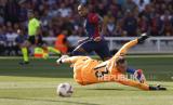Ekspresi pemain Barcelona Raphinha saat pertandingan antara FC Barcelona dan Valladolid dalam La Liga Spanyol di stadion Olimpiade di Barcelona, ????Spanyol, Sabtu (31/8/2024). Barcelona menundukkan tim tamu Real Valladolid dengan skor 7-0. (FOTO : AP Photo/Joan Monfort)